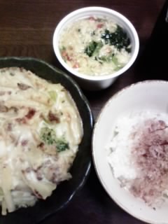 ■昨夜はグラタンにチャレンジしたのですが、最初に比べてずいぶんと手際が良くなったと思います。具材もある時はたんまりと使うので、いろんな味がしてうまい!昨日はポテトにブロッコリーベーコン玉ねぎ肉でした~