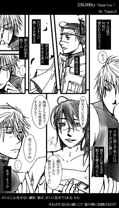 ■ 裏業農民 「B23」 本人直参です。 ≪新刊≫ 「月虹の殻」暗部合同誌 ≪既刊≫ 「全て」持って行きます。ABOUTでご確認下さいませ。 ※お金では~2の在庫が少ないですので、もし欲しい方がいらっしゃいましたら お早めにお願いします。 あと、「はたけさんの憂鬱シリーズ」も今回はしっかり印刷して持って行きます。 (ご注文戴きました御方様の分はしかと確保済みですので、ご安心下さいませ) ≪作成出来るかな?≫ はたけさんの憂鬱6(コピー本) もし無事仕上げられたらスペースに置いてますので、ご希望される方はお尋ね下さいませ。 久々のオンリーですね。 とっても楽しみです! スペースにてまったりとしていると思いますので、どうぞかまってやって下さいませ。